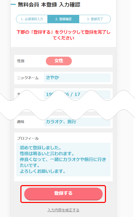 入力した内容を確認して、問題なければ「登録する」をクリックしましょう。