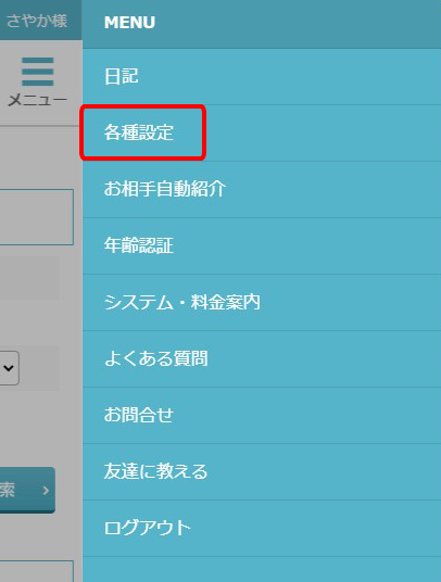 メニューが開いたら、「各種設定」をクリックしてみてください。