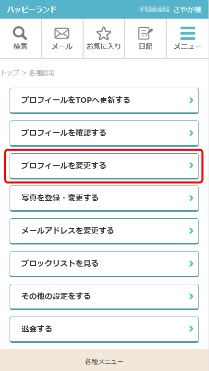 各種設定の一覧が表示されましたら、「プロフィールを変更する」をクリックしましょう。